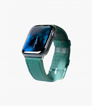 Apple Watch Series 5 Space Gray Aluminum Case with Green Leather Strap